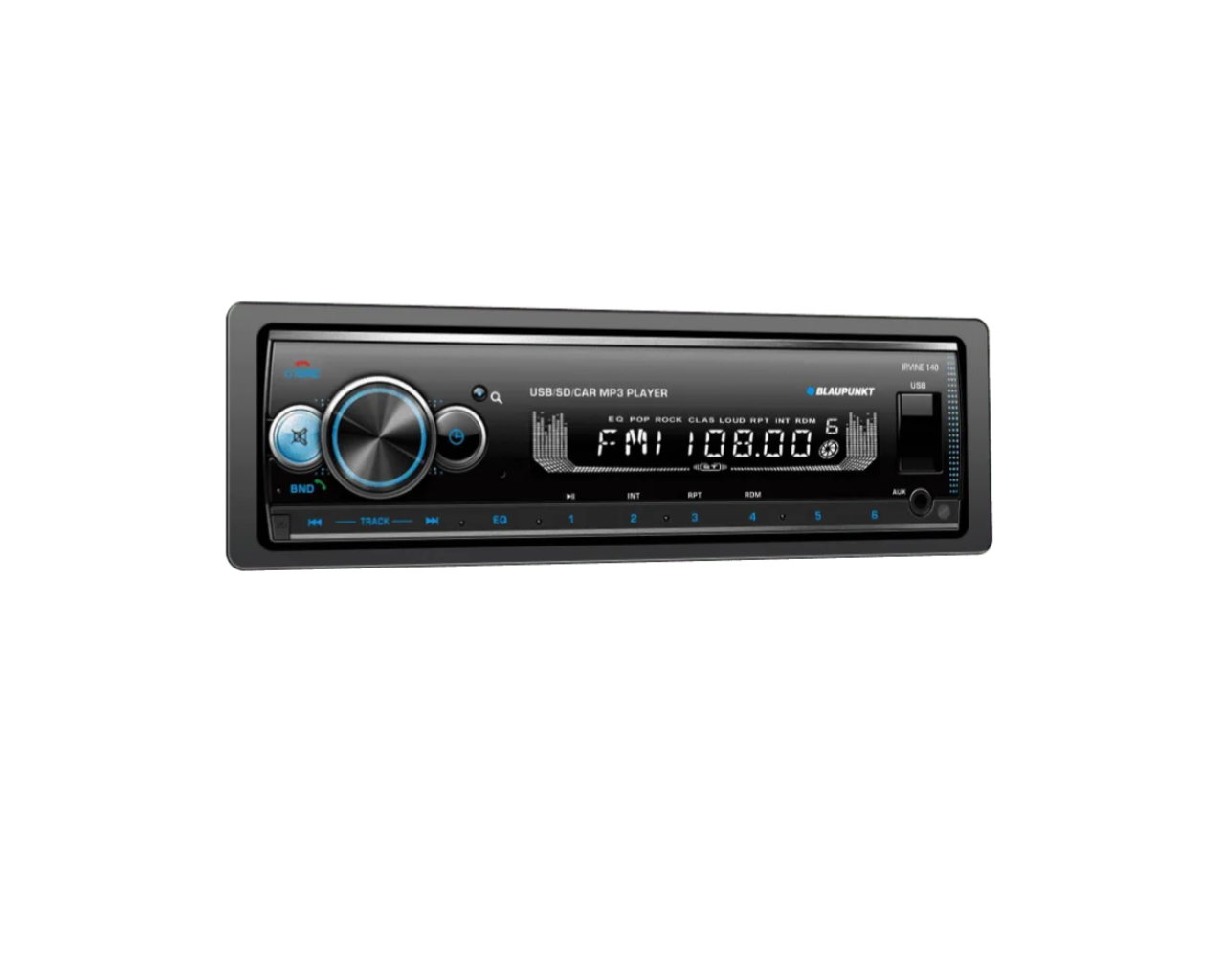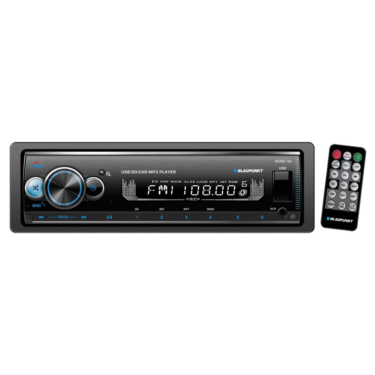 The Blaupunkt Irvine 140 is a 1-DIN car multimedia player designed to enhance your driving experience. With 4 x 10W of powerful audio output, this mechless unit eliminates the need for a CD player, allowing a sleek design that focuses on digital media. Whether you're streaming music through Bluetooth, plugging in a USB drive or SD card, or tuning into your favorite radio station with 30 AM/FM presets, the Irvine 140 ensures that your drive is filled with high-quality sound. Add a subwoofer to take the bass to the next level and feel the beat.