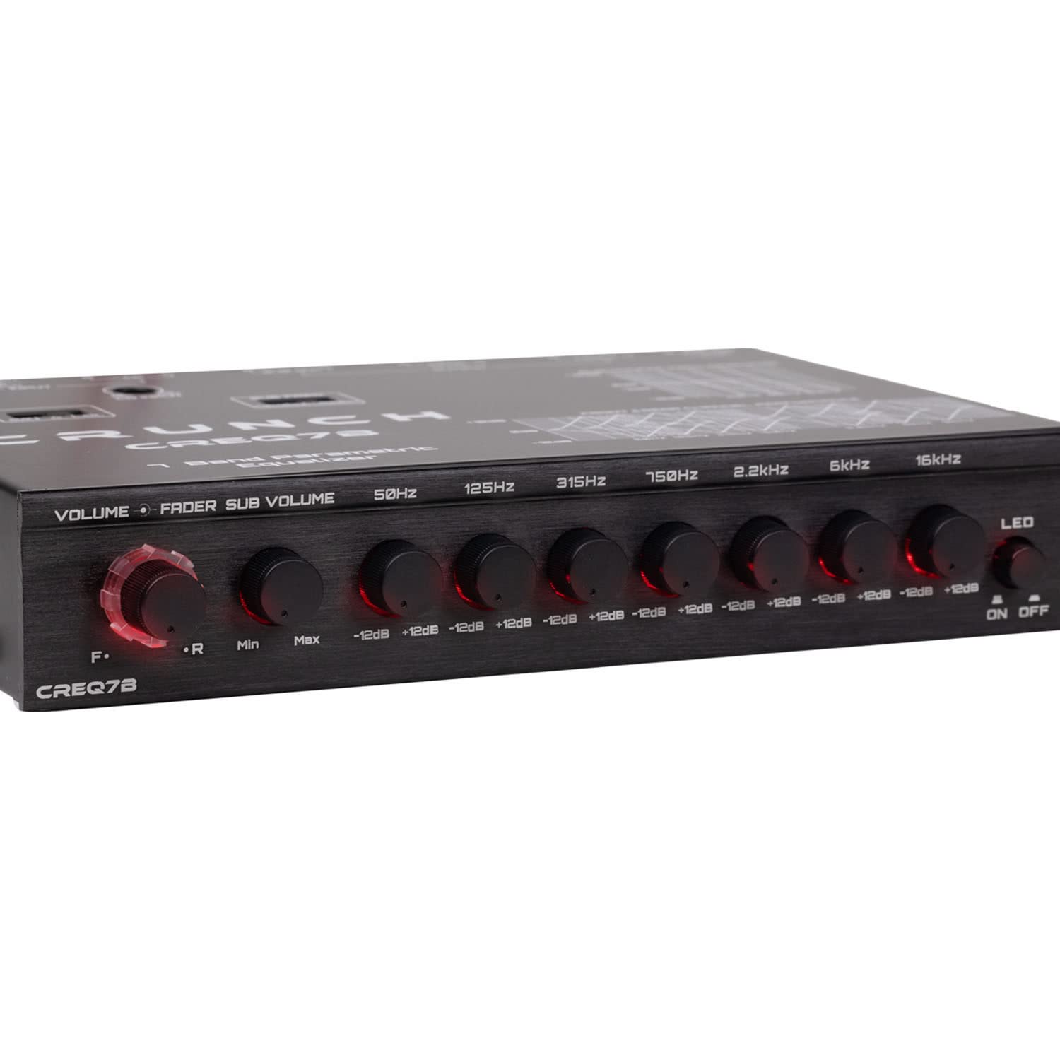The Crunch CREQ7B 7-Band Equalizer is designed to give car audio enthusiasts the ultimate in sound tuning precision. Featuring a fully adjustable frequency range with a -12dB to +12dB variable control, this equalizer ensures that you can tailor the audio output to your exact preferences. Whether you're fine-tuning the lows for powerful bass or adjusting the highs for clarity, the 7-band EQ offers complete flexibility to perfect the sound in your vehicle. Combined with a 9-volt line driver, the CREQ7B ensures optimal signal strength and clarity, preventing distortion even at high volumes.