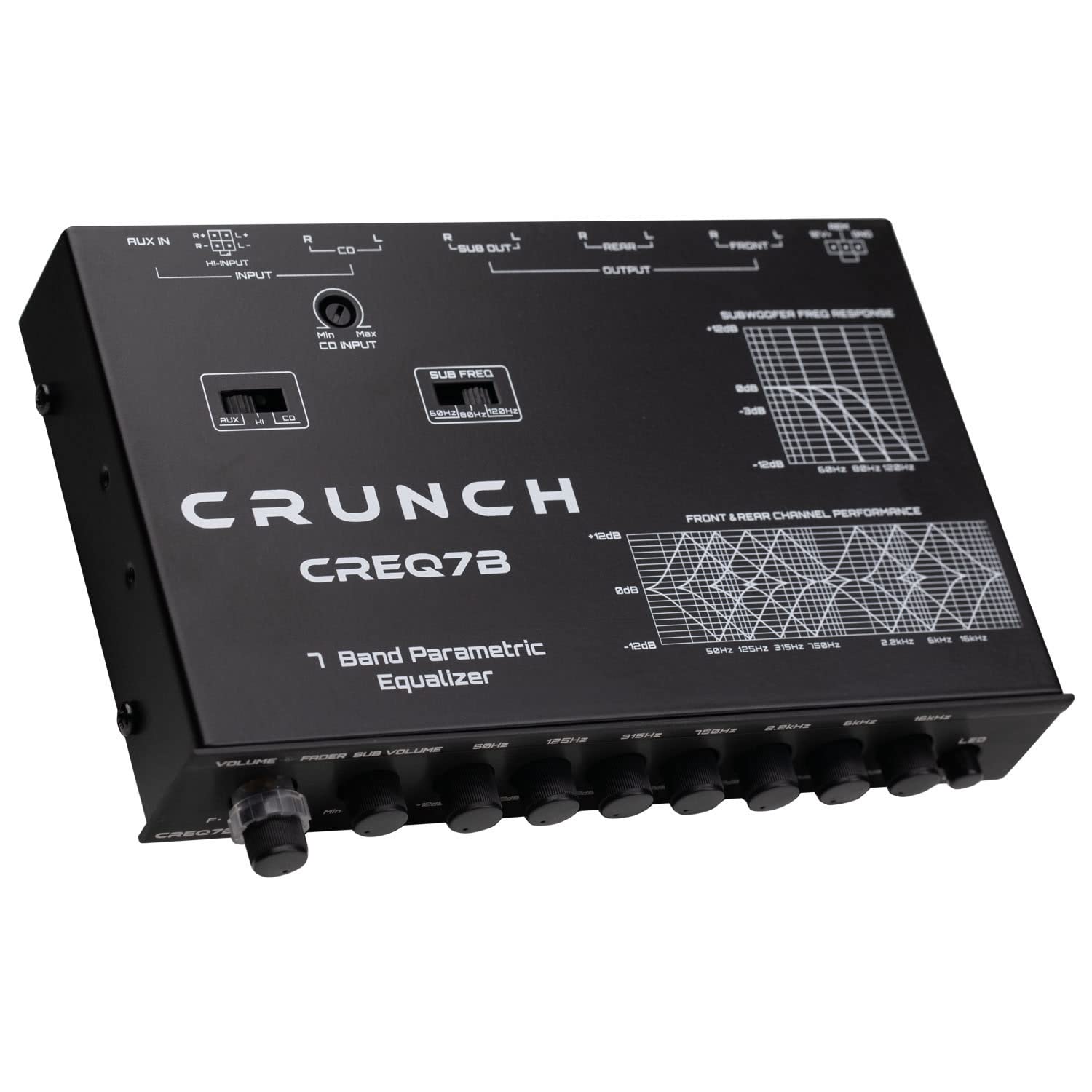 The Crunch CREQ7B 7-Band Parametric Equalizer gives you complete control over your car’s audio environment. With advanced features like a 9-volt line driver, subwoofer output with an electronic crossover, and separate volume controls, this equalizer ensures a high-quality, customizable sound experience that will elevate your in-car audio system.