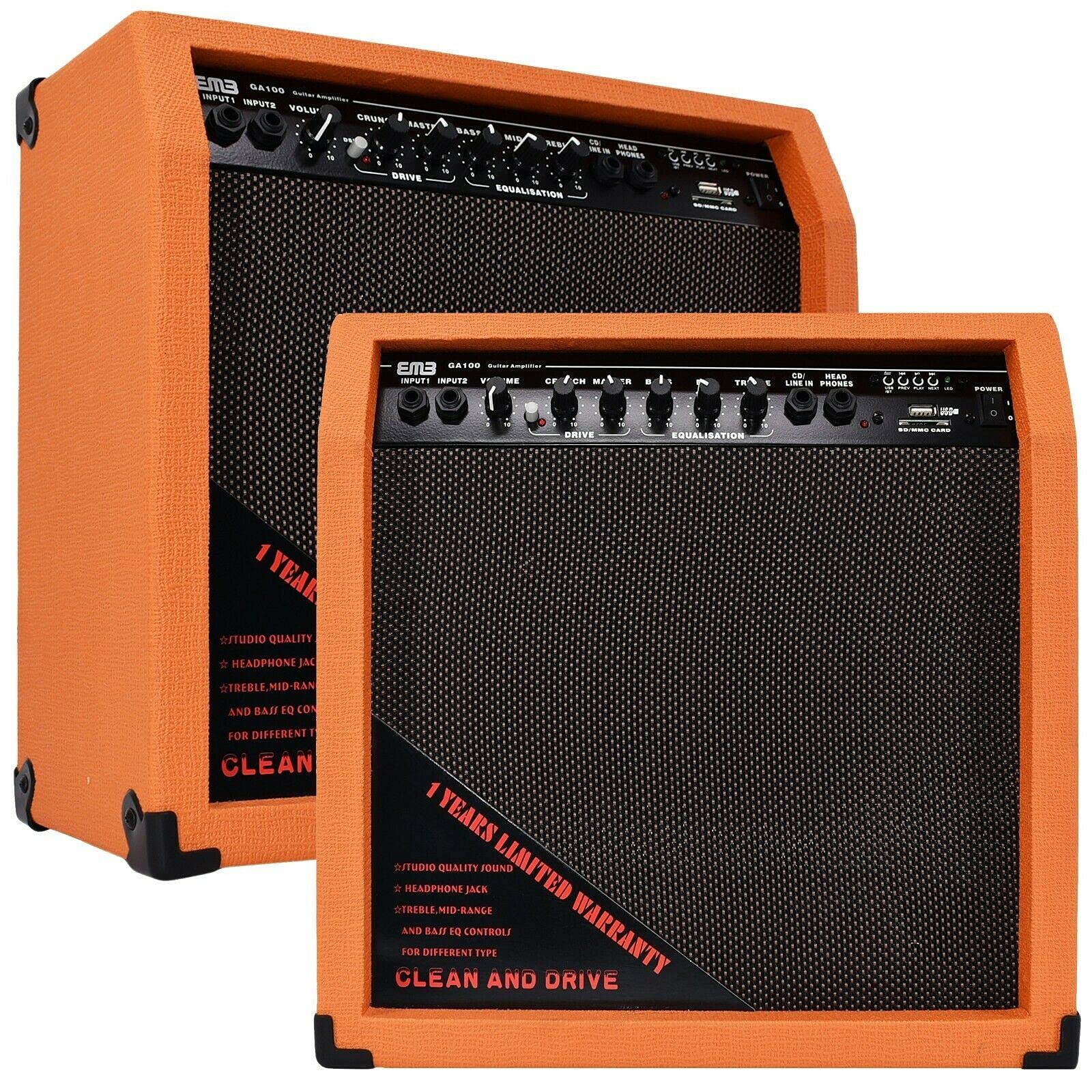 More than just a guitar amp, the EMB GA100 features built-in Bluetooth, SD, USB, and AUX inputs, allowing you to stream music, play along with backing tracks, or use it as a powerful speaker system. It includes dual 1/4" inputs for multiple instrument connections, giving musicians flexibility for solo practice or duets. The built-in headphone jack provides the option for silent practice, making it convenient for late-night sessions without disturbing others.