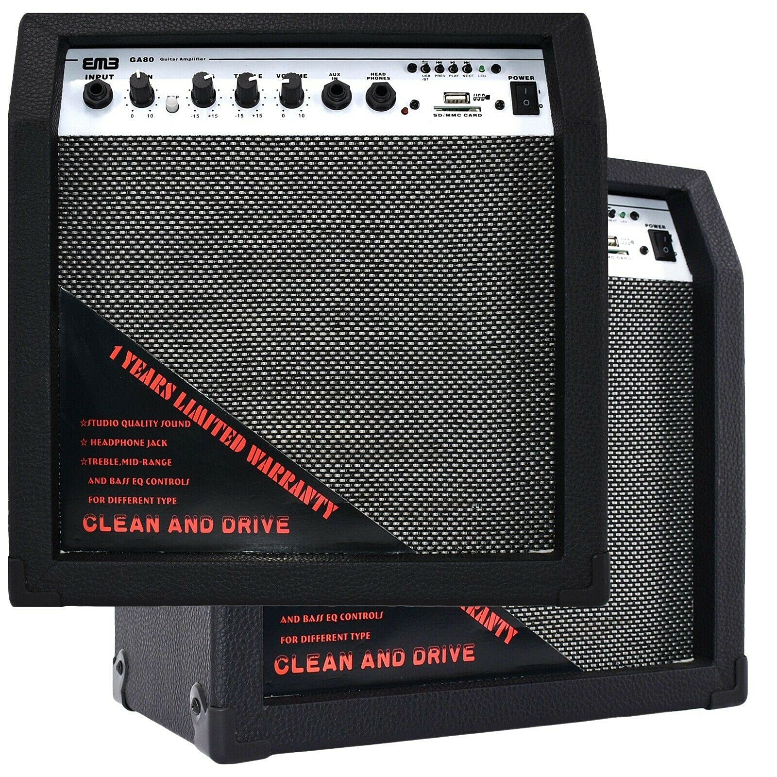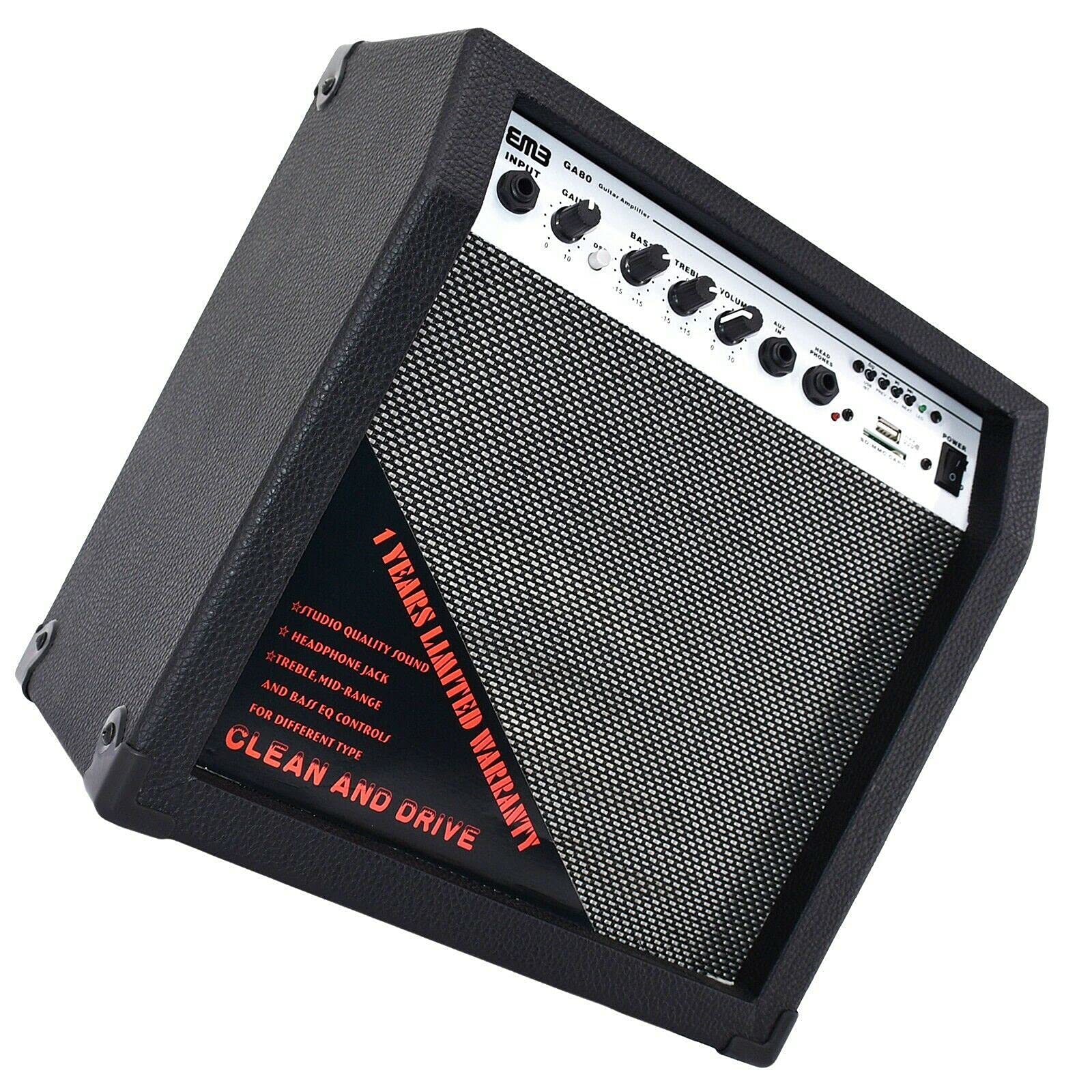 EMB GA80-BK 350W 8" Electric Guitar Amplifier Speaker – Portable, Powerful, Bluetooth-Enabled Studio & Stage Cabinet PreAMP with Headphone Jack & Multiple Inputs (Black)