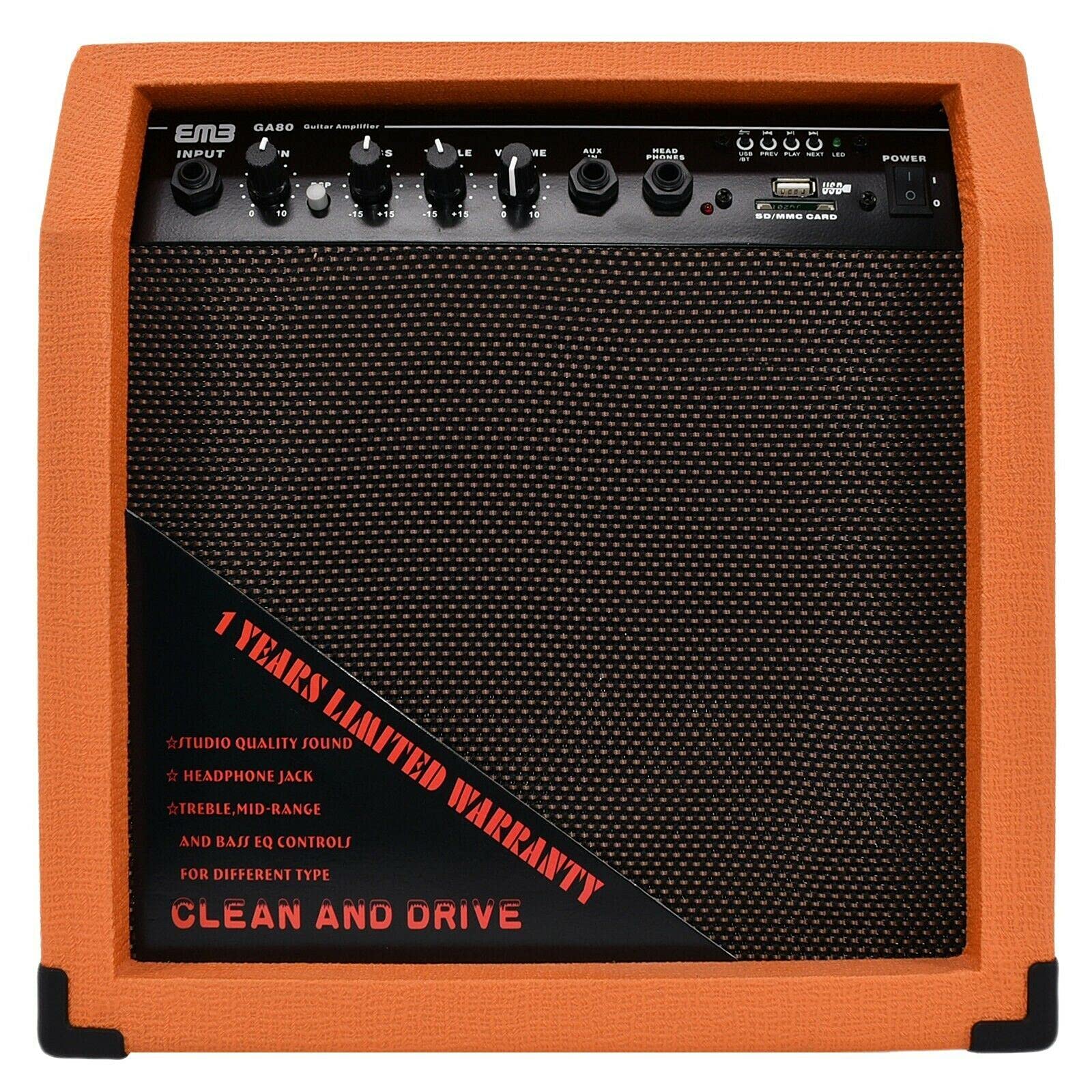 EMB GA80 350W 8" Electric Guitar Amplifier – Portable, Powerful Studio & Stage Cabinet PreAMP with Bluetooth, SD USB AUX, Headphone Jack & 2 Inputs