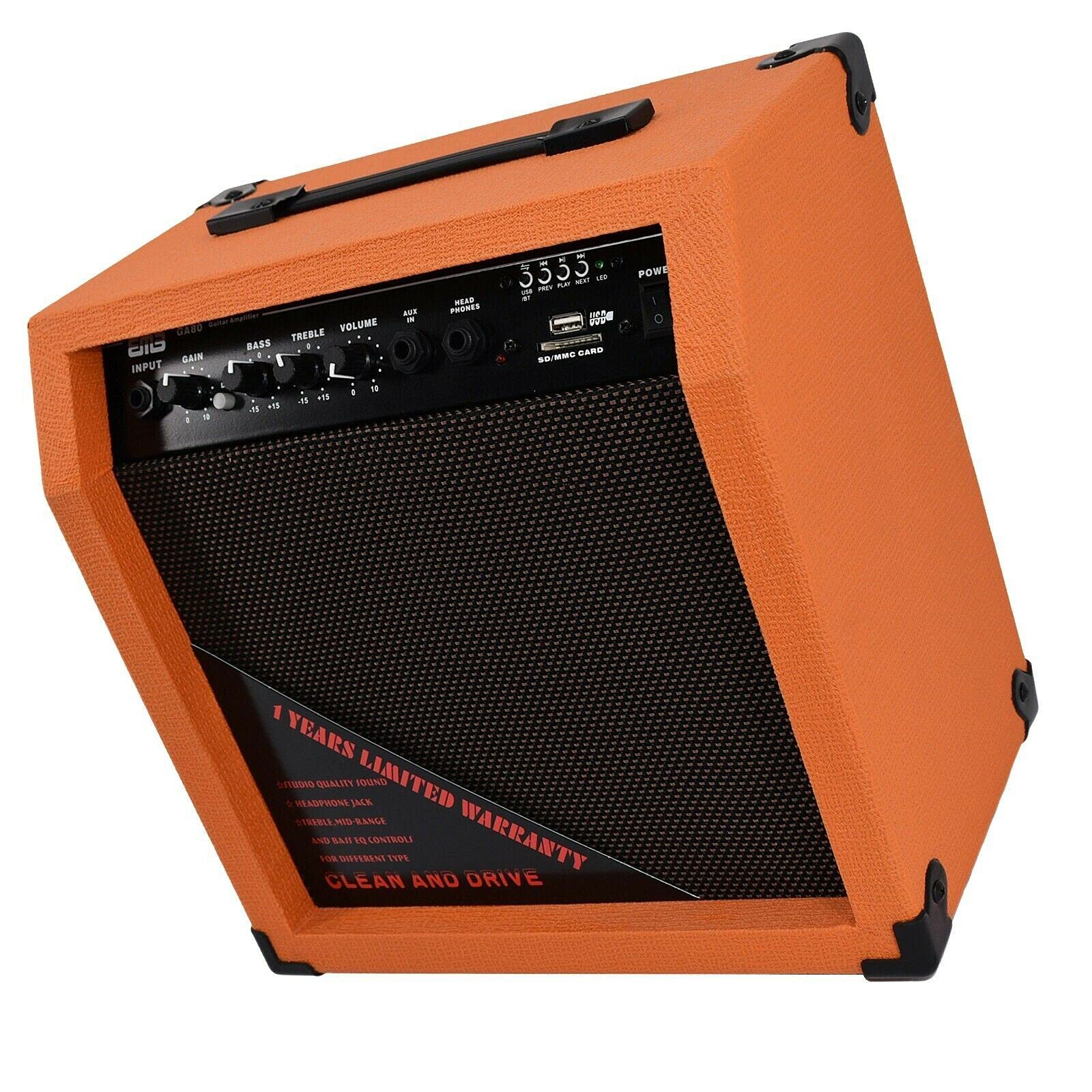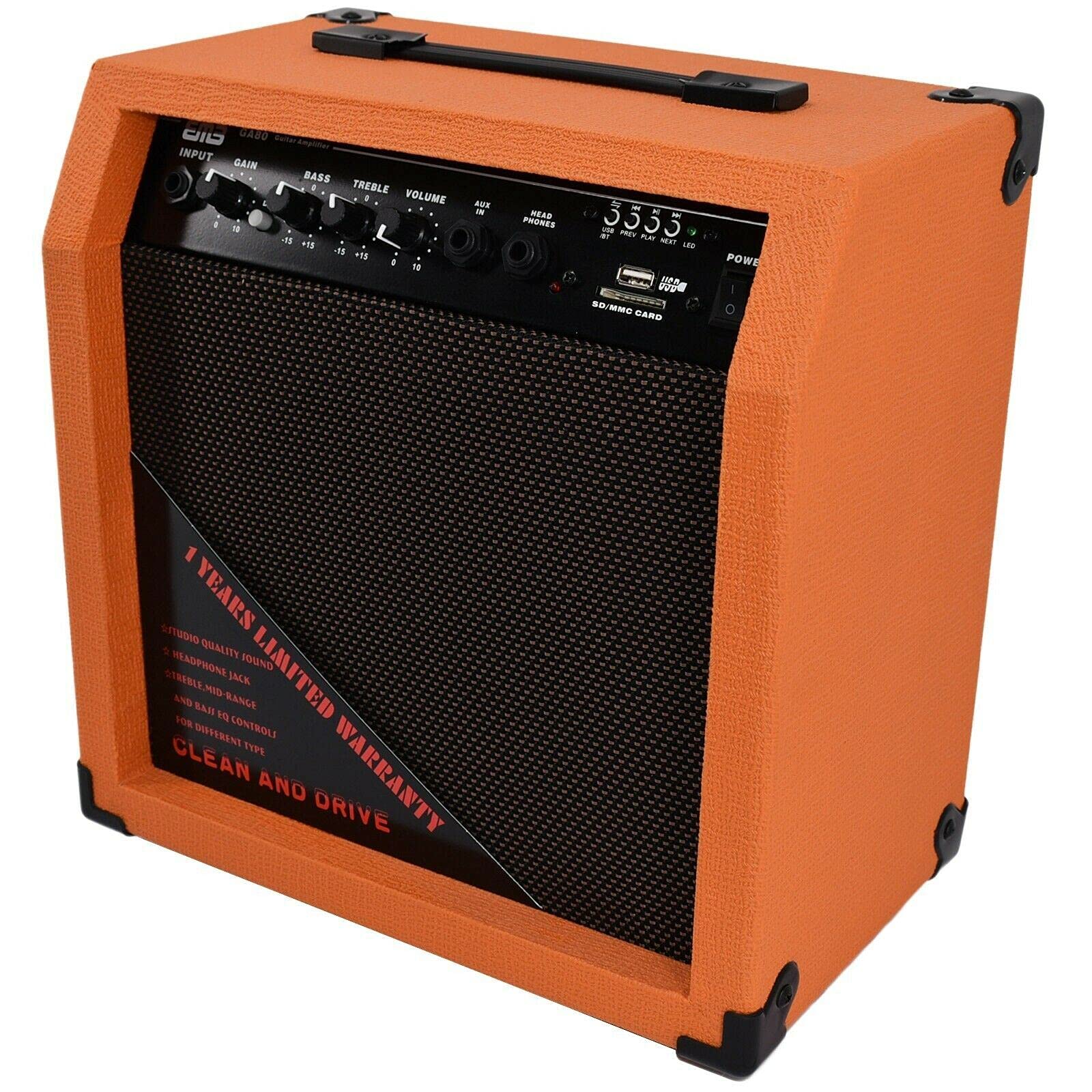 The EMB GA80 guitar amplifier is designed to deliver 350 watts of peak power, making it ideal for both home practice and live performance. With an 8-inch speaker, this amplifier produces crisp, rich sound with a strong bass response. Whether you're practicing in your bedroom, rehearsing with a band, or performing at a venue, the GA80 provides the necessary volume and clarity to bring your music to life. The added Bluetooth feature allows you to stream music directly from your smartphone or any Bluetooth-enabled device, making it easier than ever to jam along with your favorite tracks.