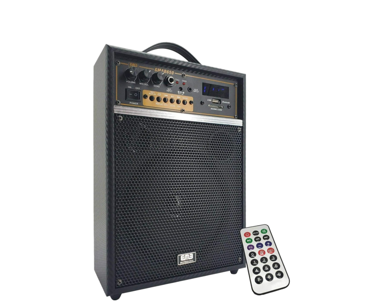 The EMB GMAB650 guitar amplifier provides 300 watts of peak power, combining a 6.5-inch subwoofer and advanced sound technology for deep, resonant bass and clear, full-range tones. Whether you’re practicing at home, jamming with friends, or performing live, this rechargeable amplifier offers portability and powerful sound, eliminating the need for a constant power source. Its sleek, compact design and built-in Bluetooth allow for effortless music streaming from your smartphone or other Bluetooth-enabled devices, ensuring you can jam along with your favorite tracks anywhere.