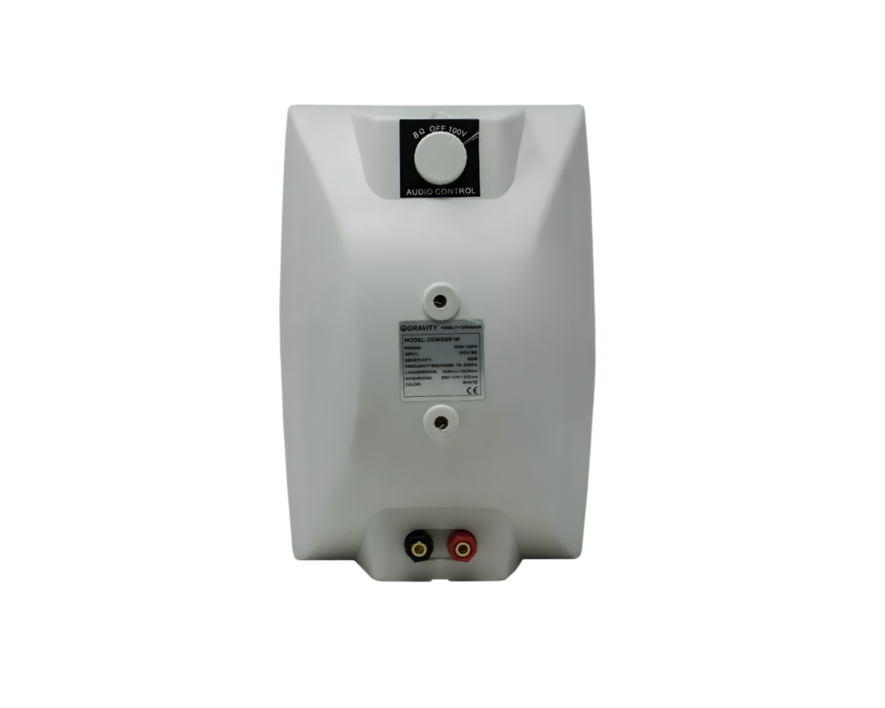 Built for outdoor use, the Gravity CGW225 features a rugged, weatherproof construction that can handle various climates and conditions. The white enclosure blends seamlessly into any environment, while its sturdy design protects against moisture, dust, and temperature fluctuations. Whether mounted on a wall, under an eave, or in an open space, this speaker provides consistent and high-quality sound performance year-round.