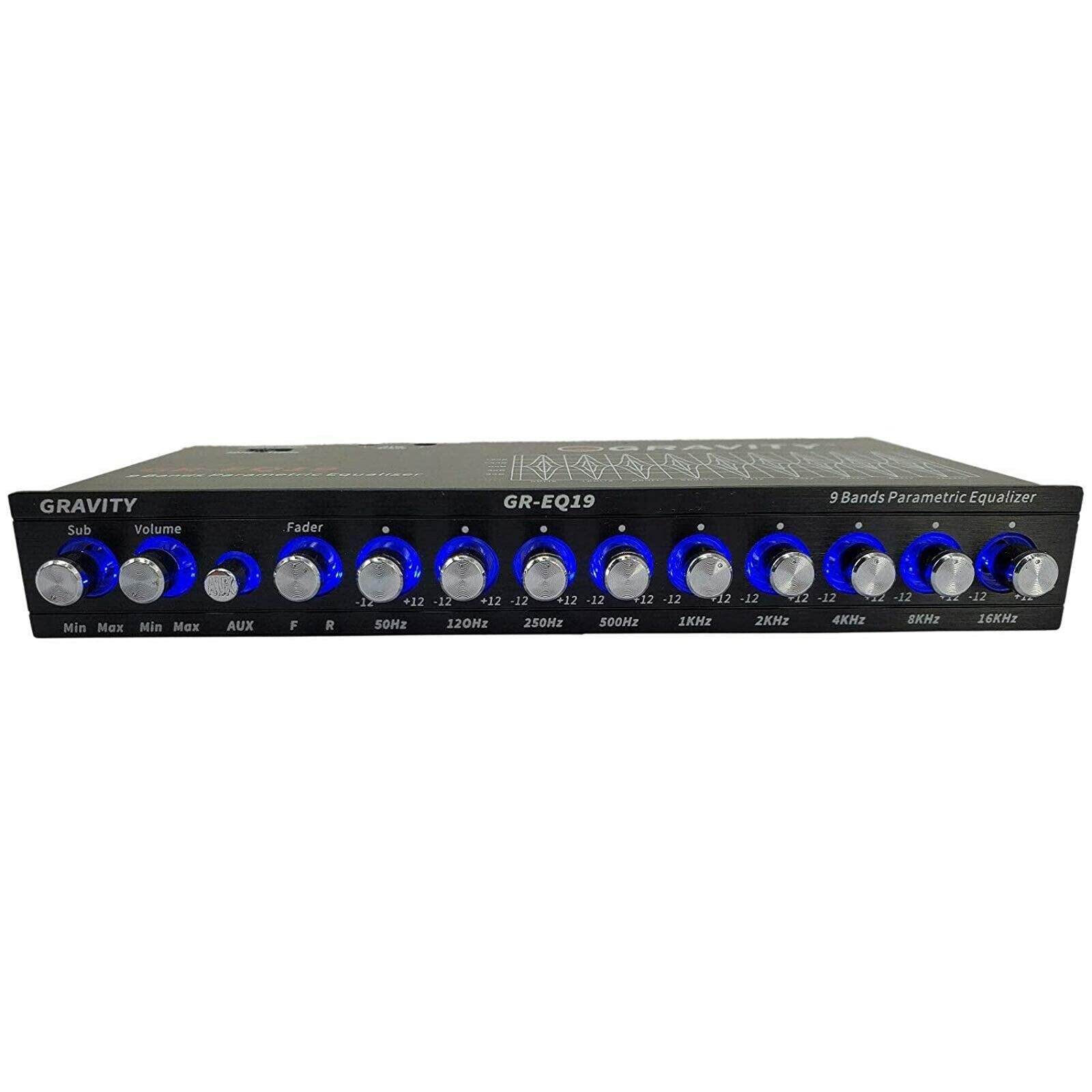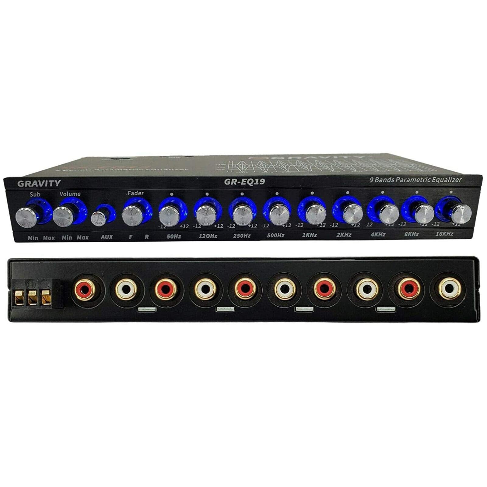 Gravity GR-EQ19 1/2 Din 9-Band Car Audio Equalizer with Front, Rear & Sub Outputs, 9V RMS Output, and AUX/DVD Select Switch