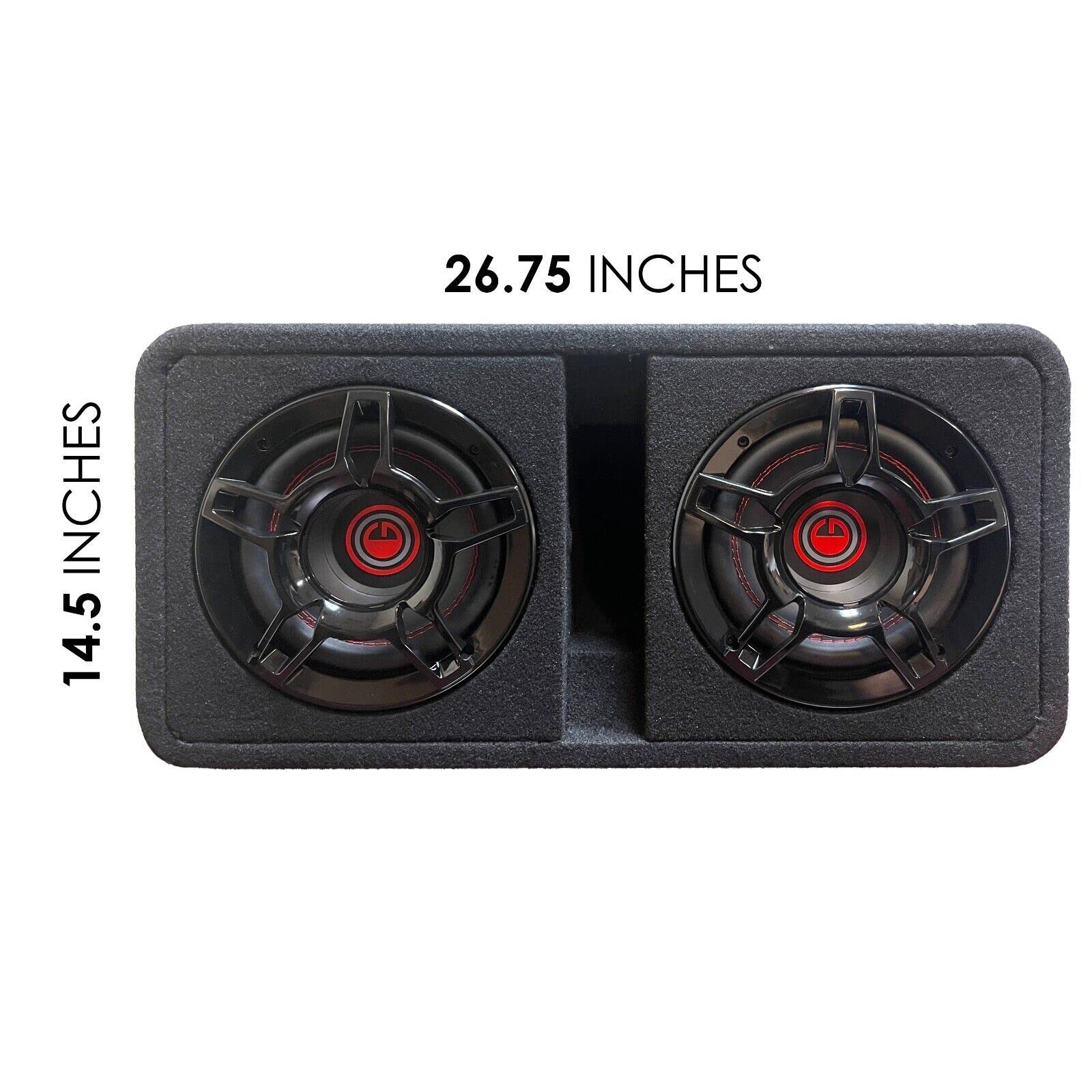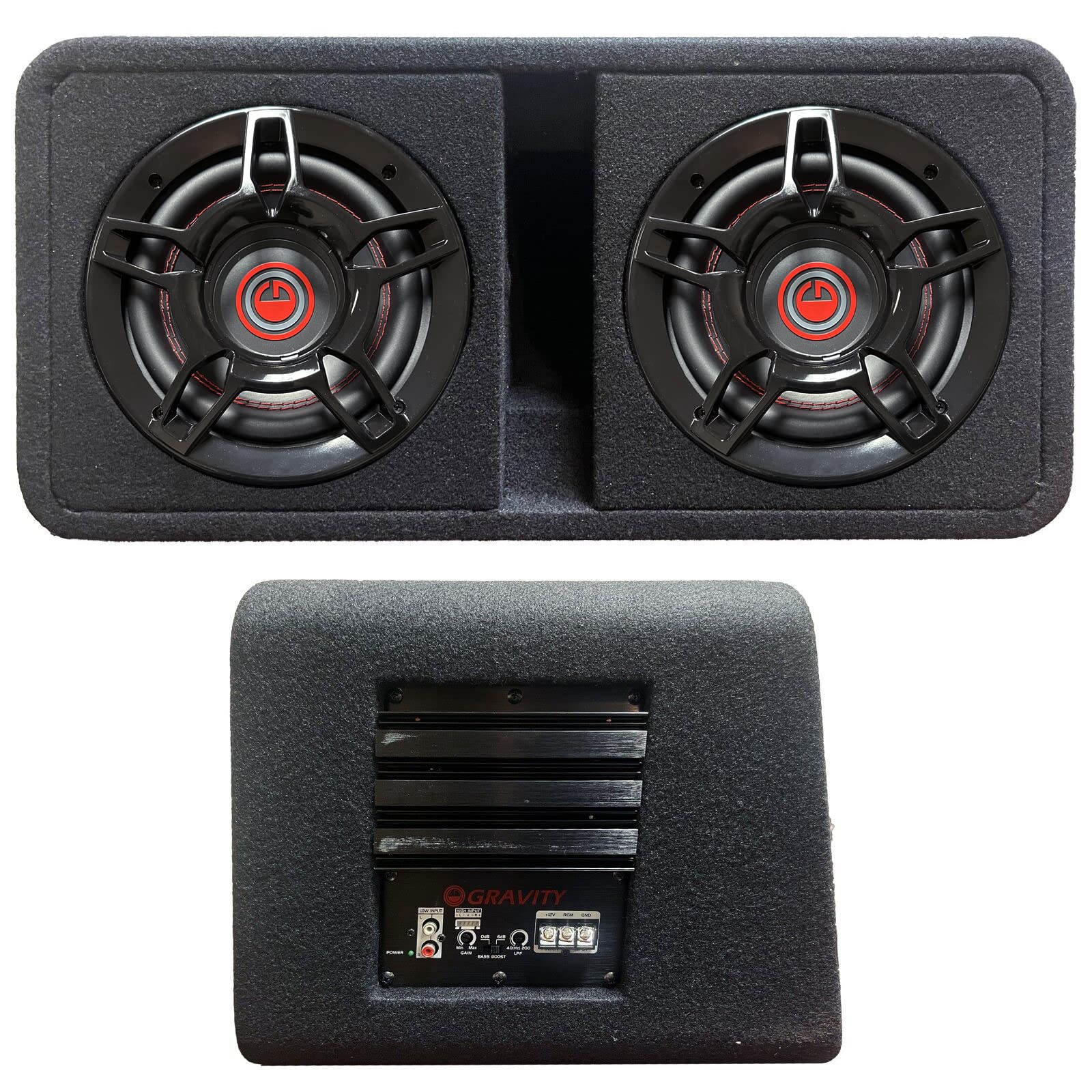 The Gravity G8BD2 combines power, precision, and portability in one compact unit. This dual 8" active powered subwoofer enclosure delivers 1200 watts of peak power, offering deep and dynamic bass that transforms your car audio experience. The ported design maximizes airflow to produce clear, punchy low-end frequencies, while the built-in amplifier ensures efficient performance without additional components. Its small footprint and durable build make it ideal for car audio enthusiasts who demand premium bass in a space-conscious design.