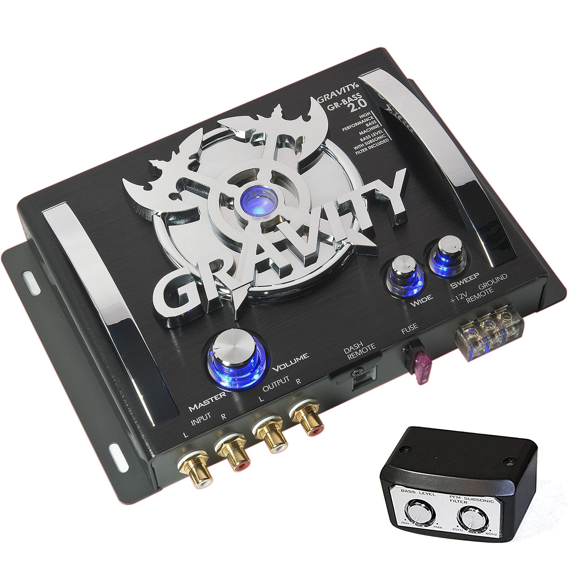Gravity GR-BASS 2.0 Car Audio Digital Bass Processor - Bass Maximizer & Sound Restoration with Subsonic Filter and Illuminated Bass Knob Control
