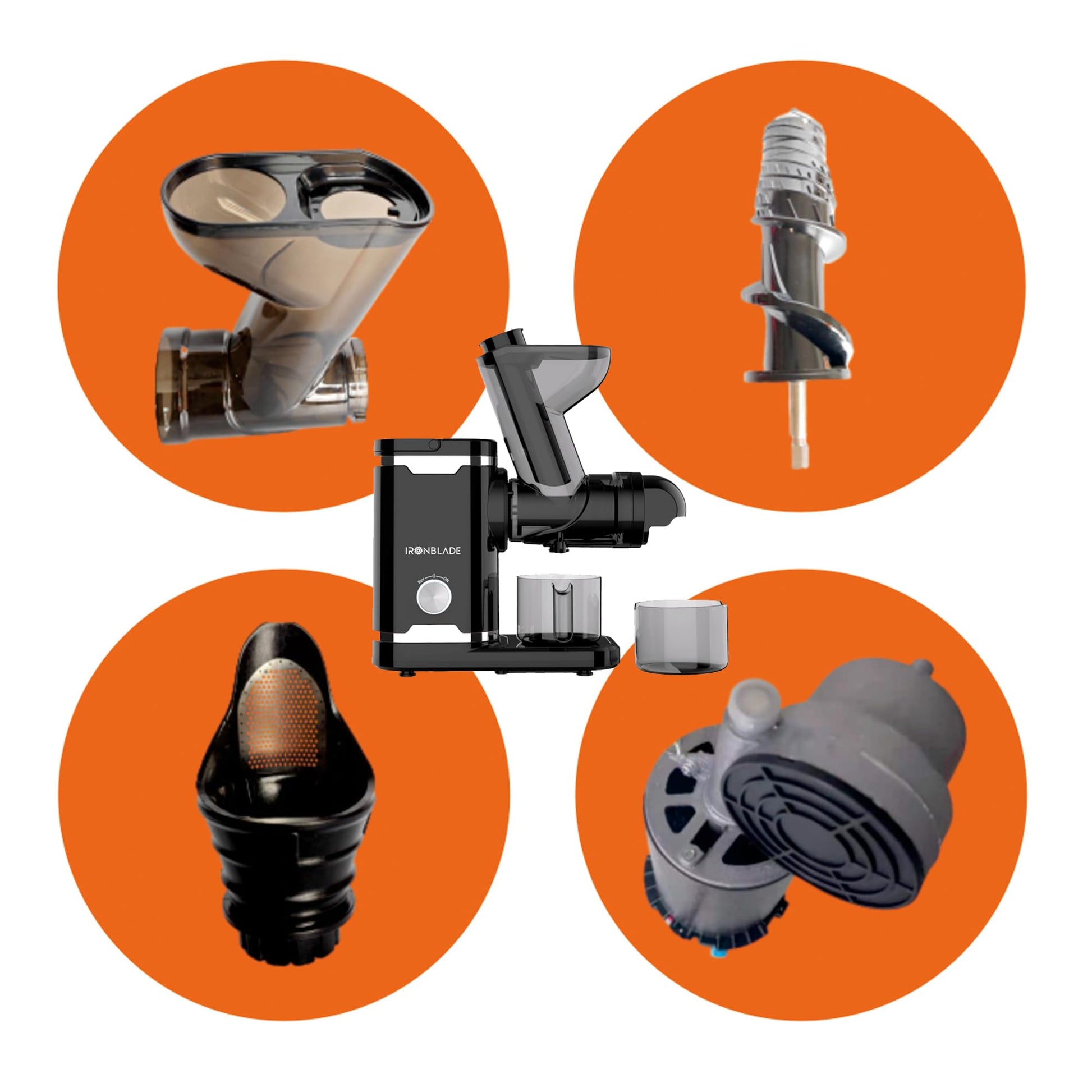 IronBlade IBLJU30 Horizontal Slow Juicer – Quiet Motor, 70mm Wide Chute, High-Yield Cold Press Juicer with Minimal Oxidation & Easy Clean-Up