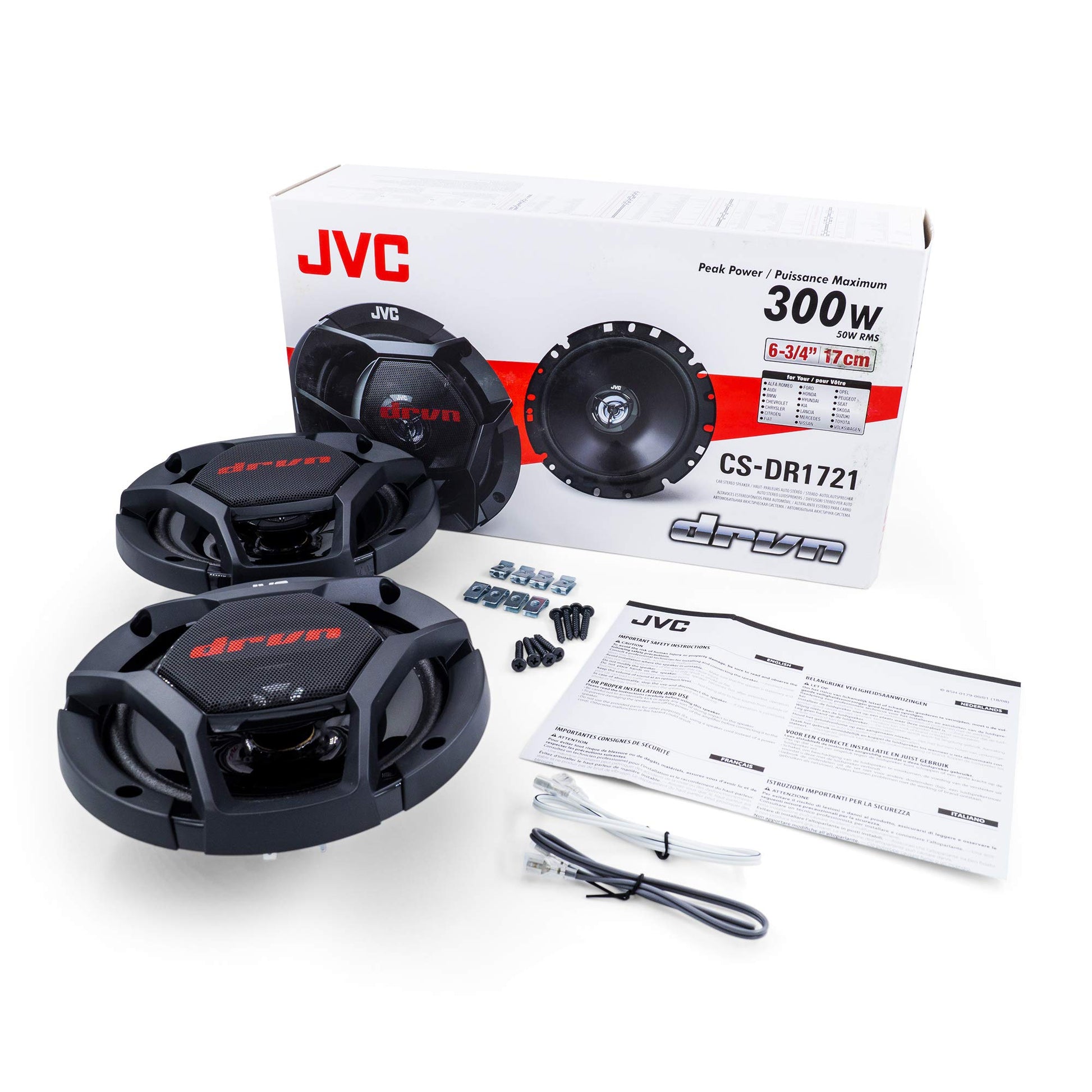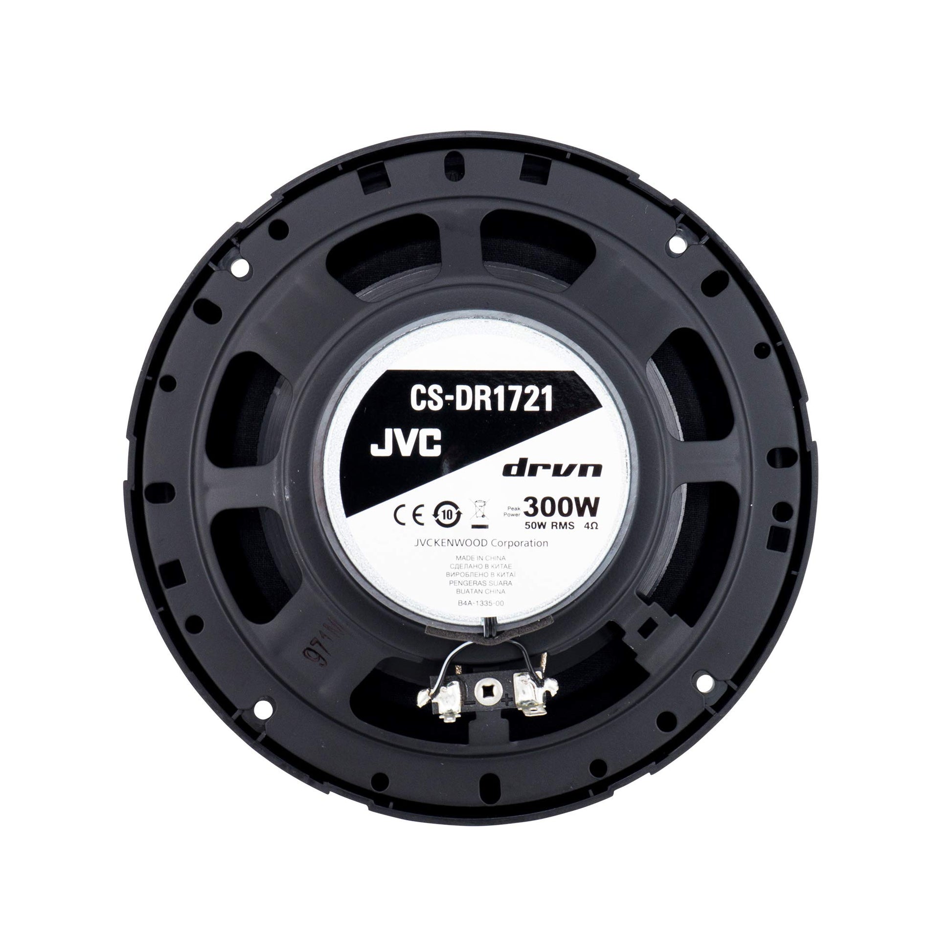 The JVC CS-DR1721 DRVN Series provides a dynamic audio upgrade with 6.75" carbon mica woofers and 1" PEI balanced dome tweeters. With 300 watts max power and 50 watts RMS, these speakers deliver clear highs, rich mids, and deep bass for an immersive listening experience.