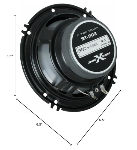 The SoundXtreme ST-603 6" 3-Way Coaxial Car Speakers are designed to take your car's audio system to new heights. With a peak power rating of 350W, these speakers deliver crystal-clear highs, deep bass, and midrange tones that enrich every track. Featuring a 30mm PEI dome tweeter, these speakers excel at producing exceptional treble, ensuring your music sounds full and vibrant across all frequencies. The polypropylene woofer enhances the low-end, providing rich bass and midrange response, while the flex motion rubber surround ensures durability and precision. A perfect upgrade to stock car speakers, the ST-603 will transform your driving experience.