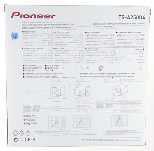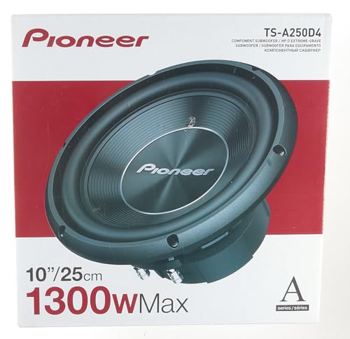 The Pioneer TS-A250D4 is engineered to bring deep, powerful bass to your car audio system. This 10-inch dual 4-ohm voice coil subwoofer is designed with glass fiber and mica interlaced IMPP (Injection Molded Polypropylene) cone construction, ensuring durability and exceptional sound clarity. Whether you're looking for clean, punchy bass or room-shaking low frequencies, this subwoofer delivers with 1300 watts of peak power and 400 watts RMS for consistent performance. Upgrade your car audio experience with a subwoofer built to impress.