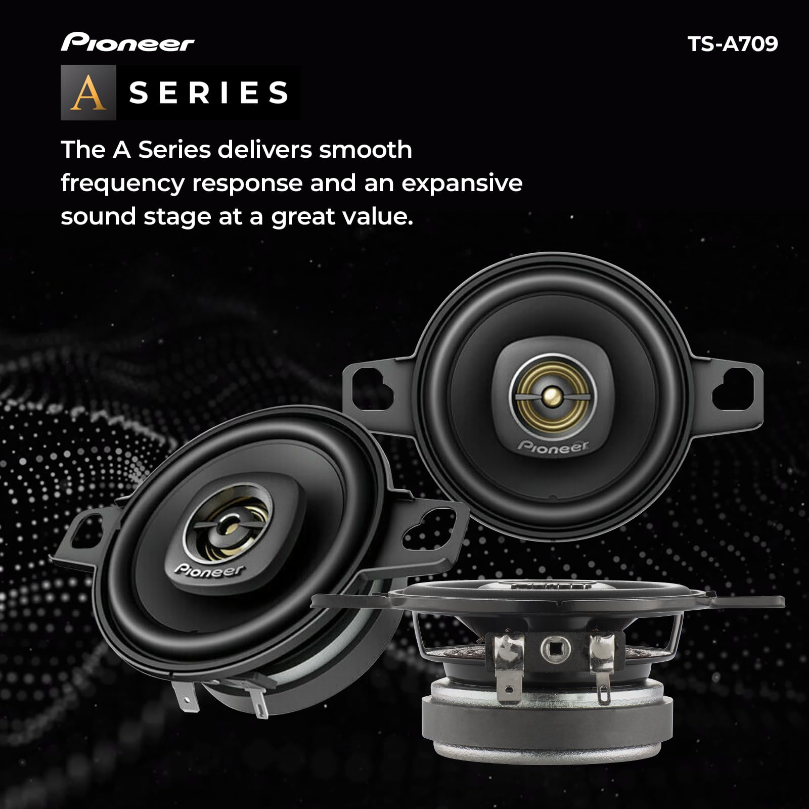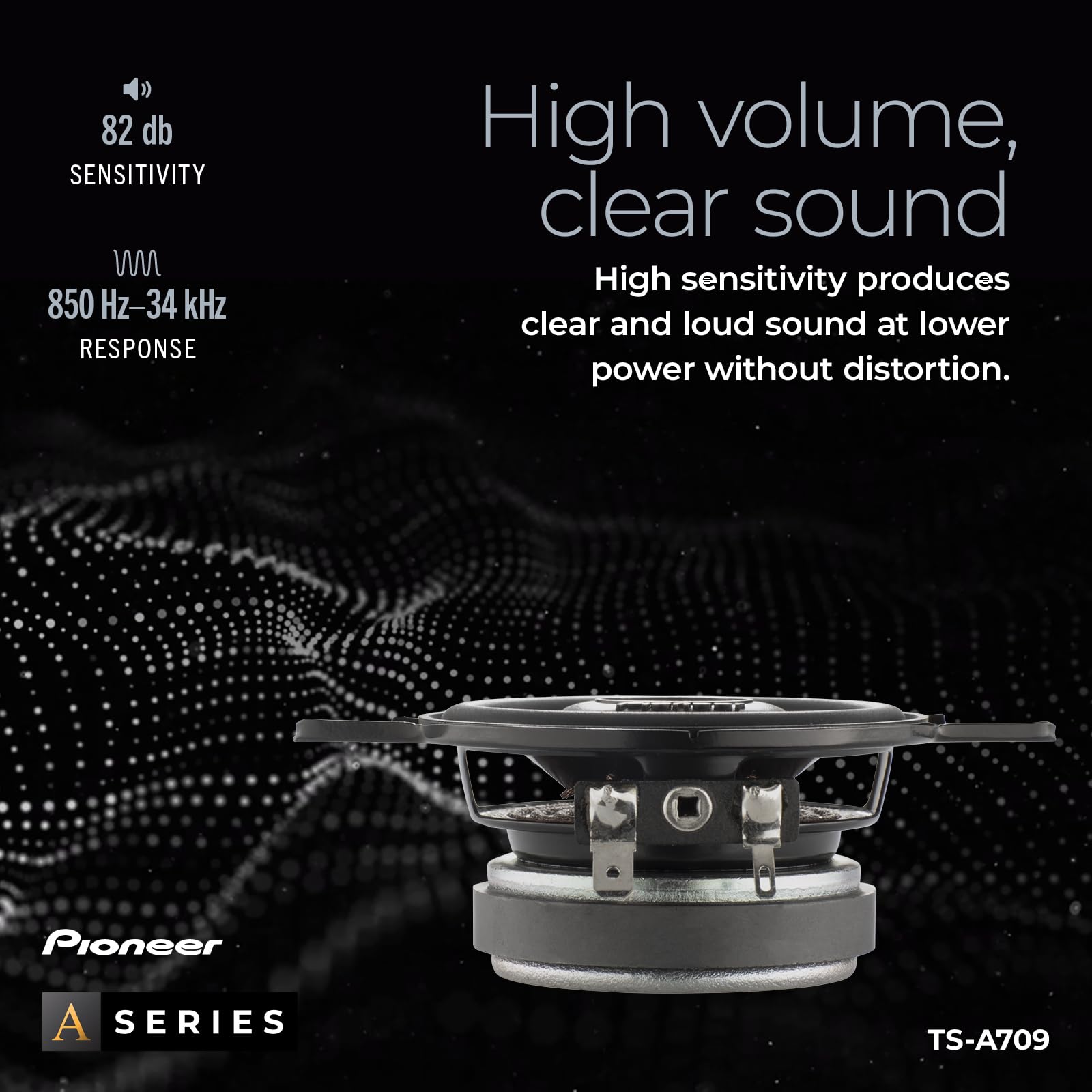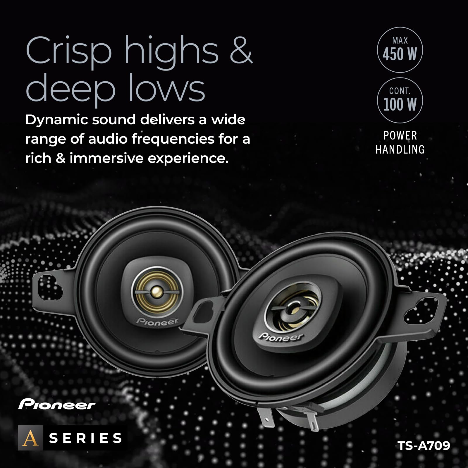 Pioneer TS-A709 2.75” 2-Way Coaxial Car Speakers – 450W Max Power, Clear Sound, Easy Installation, Black and Gold