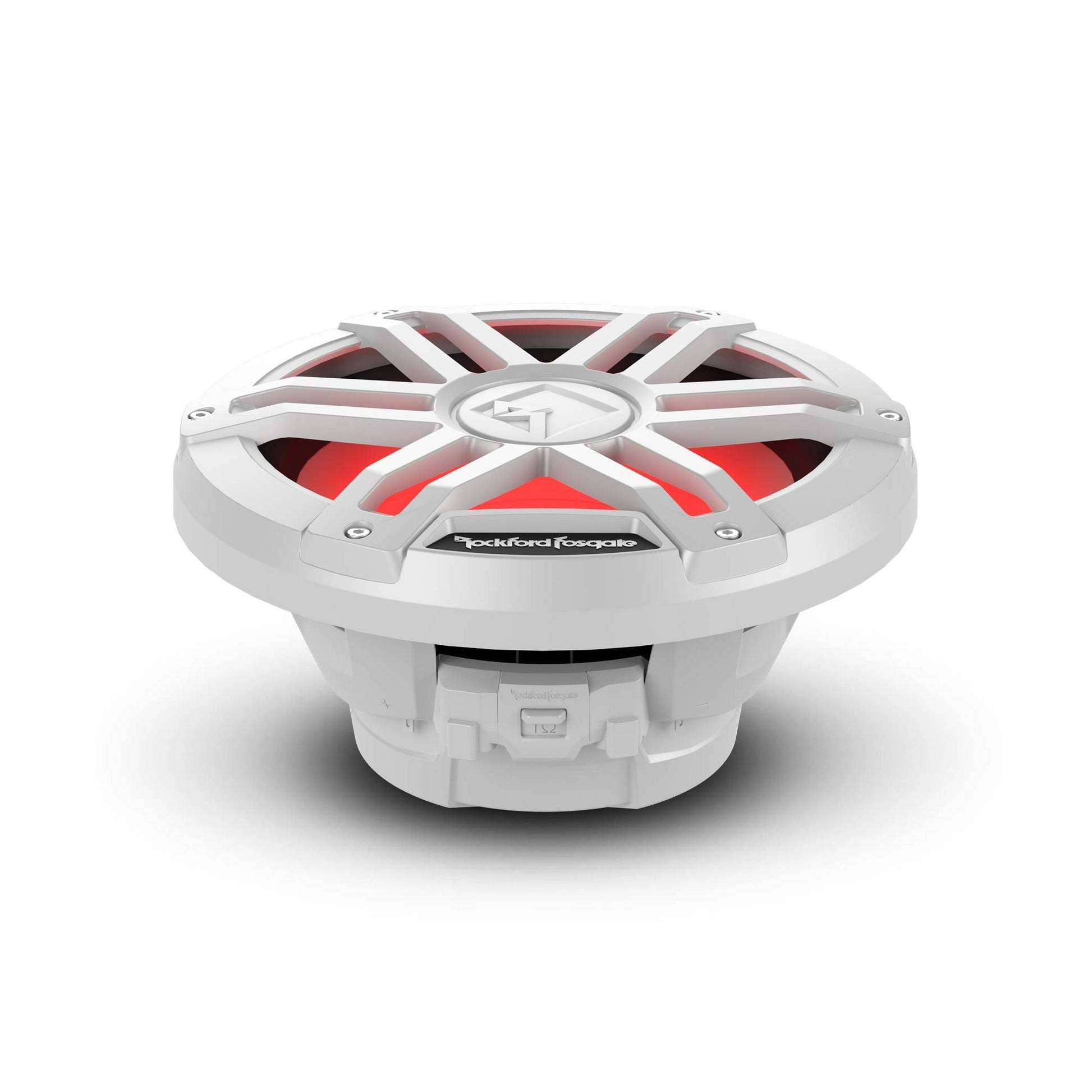 - Sleek white finish with stylish accents that complement any marine or vehicle audio system.