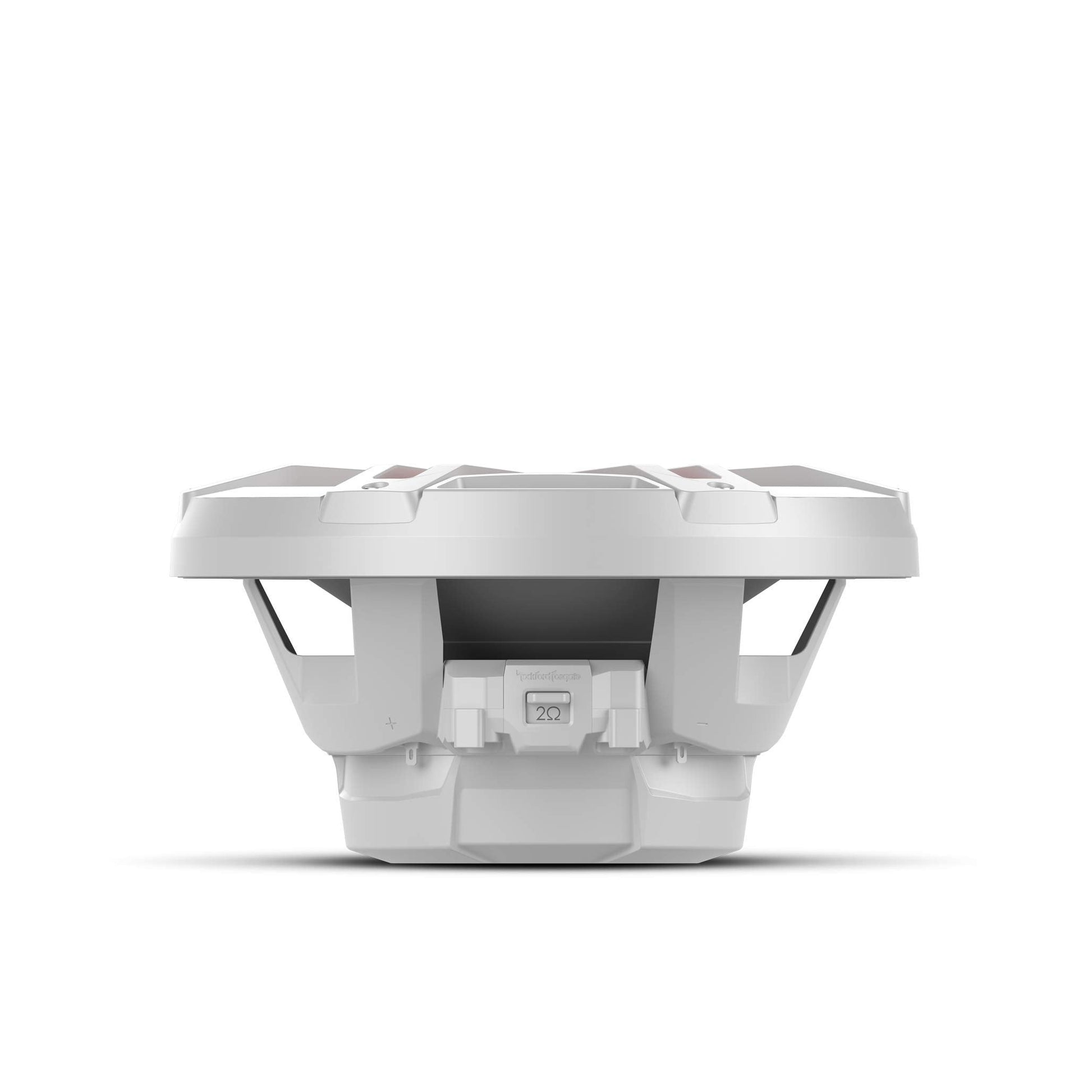 The Rockford Fosgate M1D4-10 Color Optix 10” DVC 4-Ohm marine subwoofer is engineered to provide powerful, clear, and accurate bass that enhances your audio experience while adding vibrant lighting effects. With a power handling of 300 Watts RMS and 1200 Watts Peak, this subwoofer offers deep bass performance that can be felt and heard, making it the perfect choice for your marine or motorsport audio system. The integrated RGB LEDs allow you to customize your audio experience visually, syncing with the Rockford Fosgate Color Optix Controller and RF Connect App (sold separately) for endless color options.