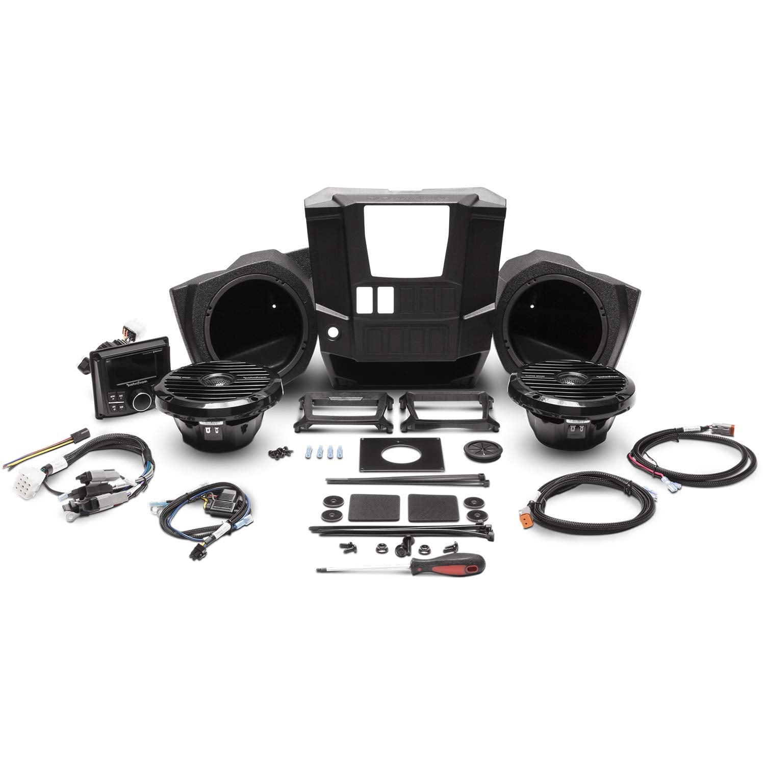 The Rockford Fosgate RNGR-STAGE2 kit is the ultimate audio enhancement for your 2015-2018 Polaris Ranger. Combining the PMX-2 digital media receiver from the Stage 1 kit with custom-designed speaker enclosures and RM1652 marine-grade speakers, this kit delivers powerful, balanced sound to transform your rides. Built for rugged durability and quick installation, this kit is your go-to solution for a factory-fit, high-quality audio system.
