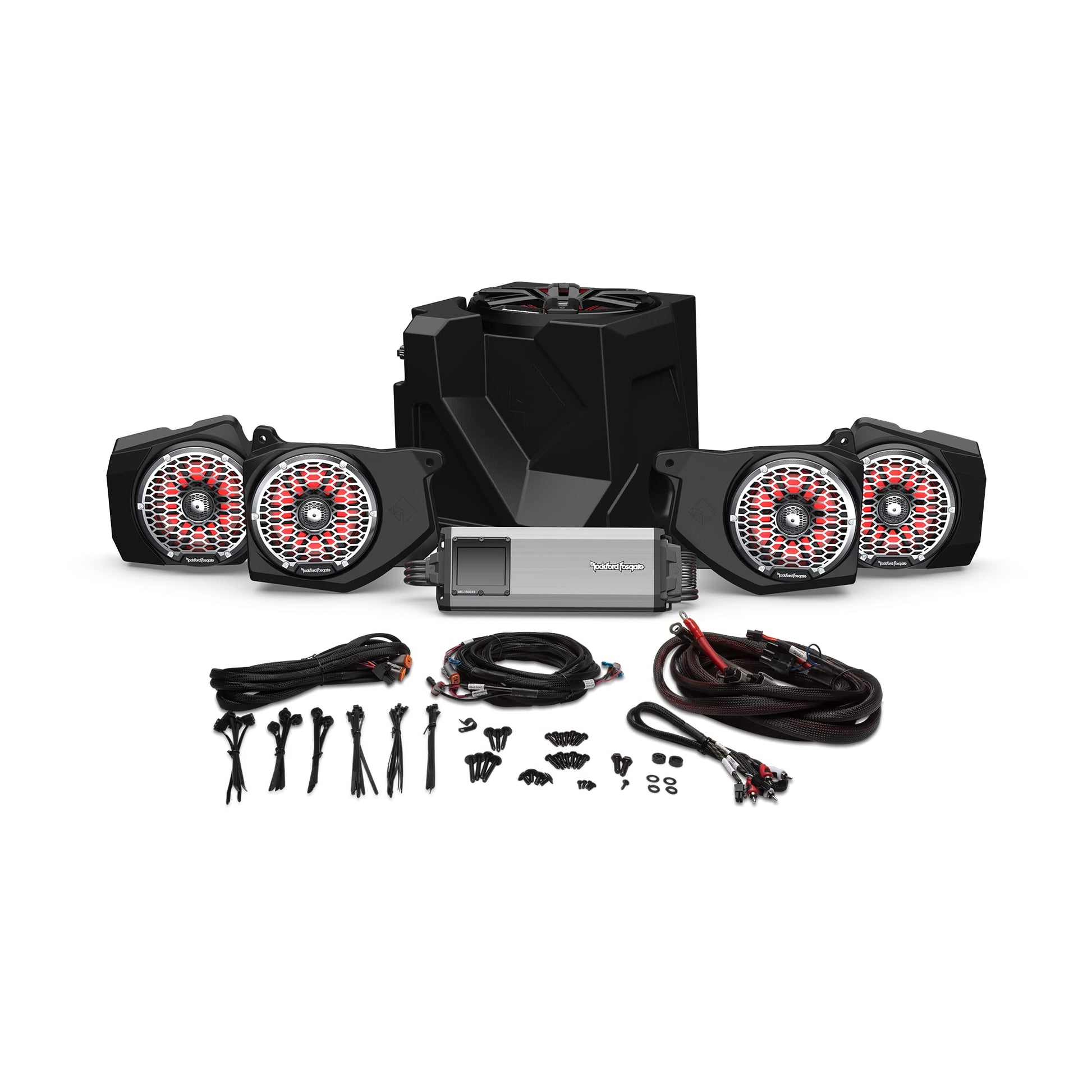 Transform your 2018+ Polaris Ranger XP 1000 with Ride Command into a high-performance audio powerhouse with the Rockford Fosgate RNGR18RC-STG6 Audio Kit. This complete, purpose-built system is designed specifically for the off-road environment, delivering robust sound and eye-catching LED illumination. Featuring the RFPOL-RC5 Polaris Ride Command audio interface and active noise reduction adaptor, this kit integrates your factory Ride Command as the source unit for your audio system, ensuring a seamless and user-friendly experience.