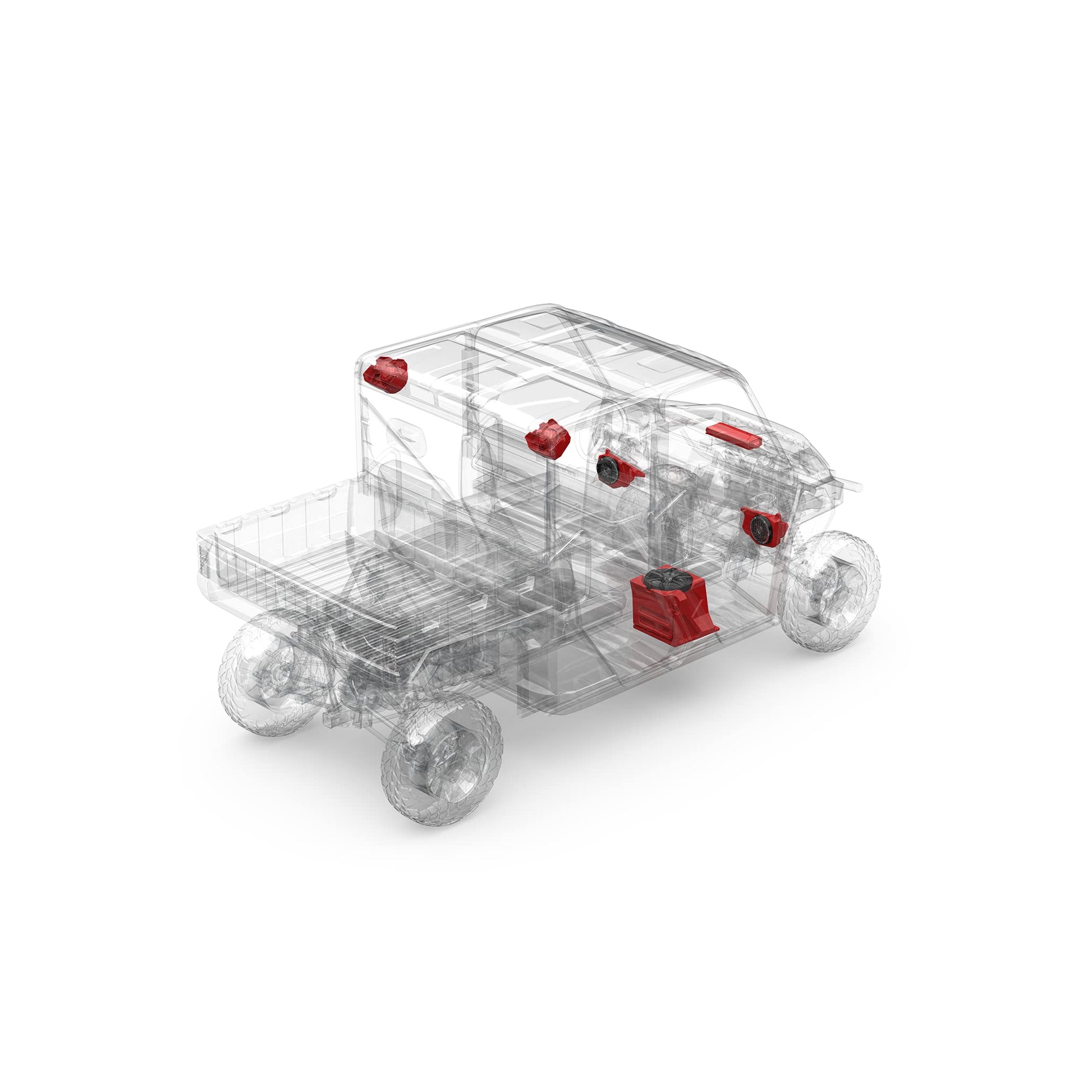 Enhance your off-road adventure with stunning sound and LED lighting with the RNGR18RC-STG6 kit. This system includes a pair of M2-65B 6.5" Color Optix full-range speakers, which provide crisp, clear audio, combined with the PMX-RGB Color Optix controller for multicolor LED lighting. These speakers are housed in RNGR18-FSE front lower speaker pod enclosures and RNGR18-RSE rear speaker pod enclosures for a custom fit, ensuring a rich, immersive sound experience and vibrant lighting for any journey.