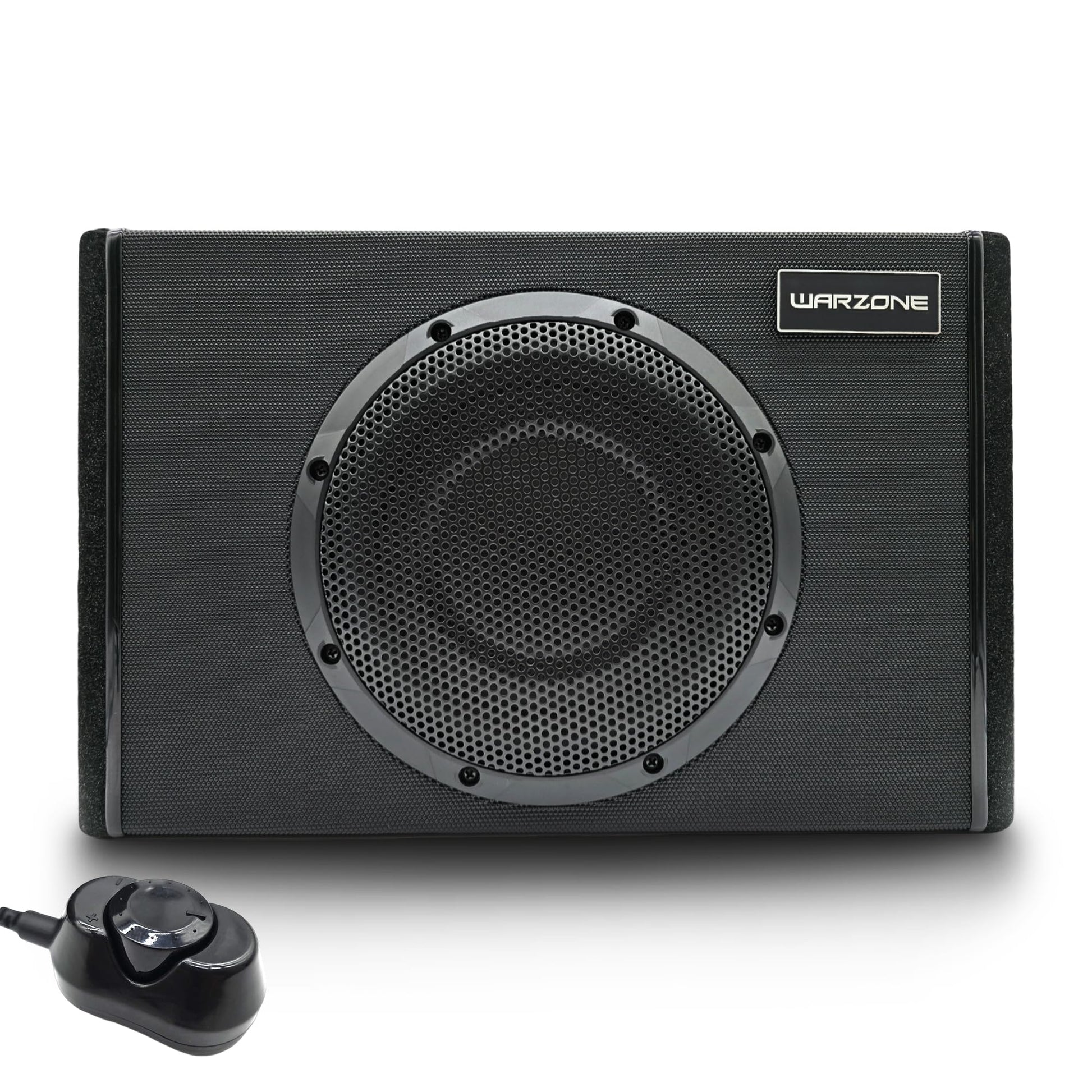 Warzone WZ10SUB 10-Inch 1500W Active Vented Subwoofer with Built-in Class-D Amplifier, Remote Control, Bass Boost, and Phase Control for Cars and Trucks